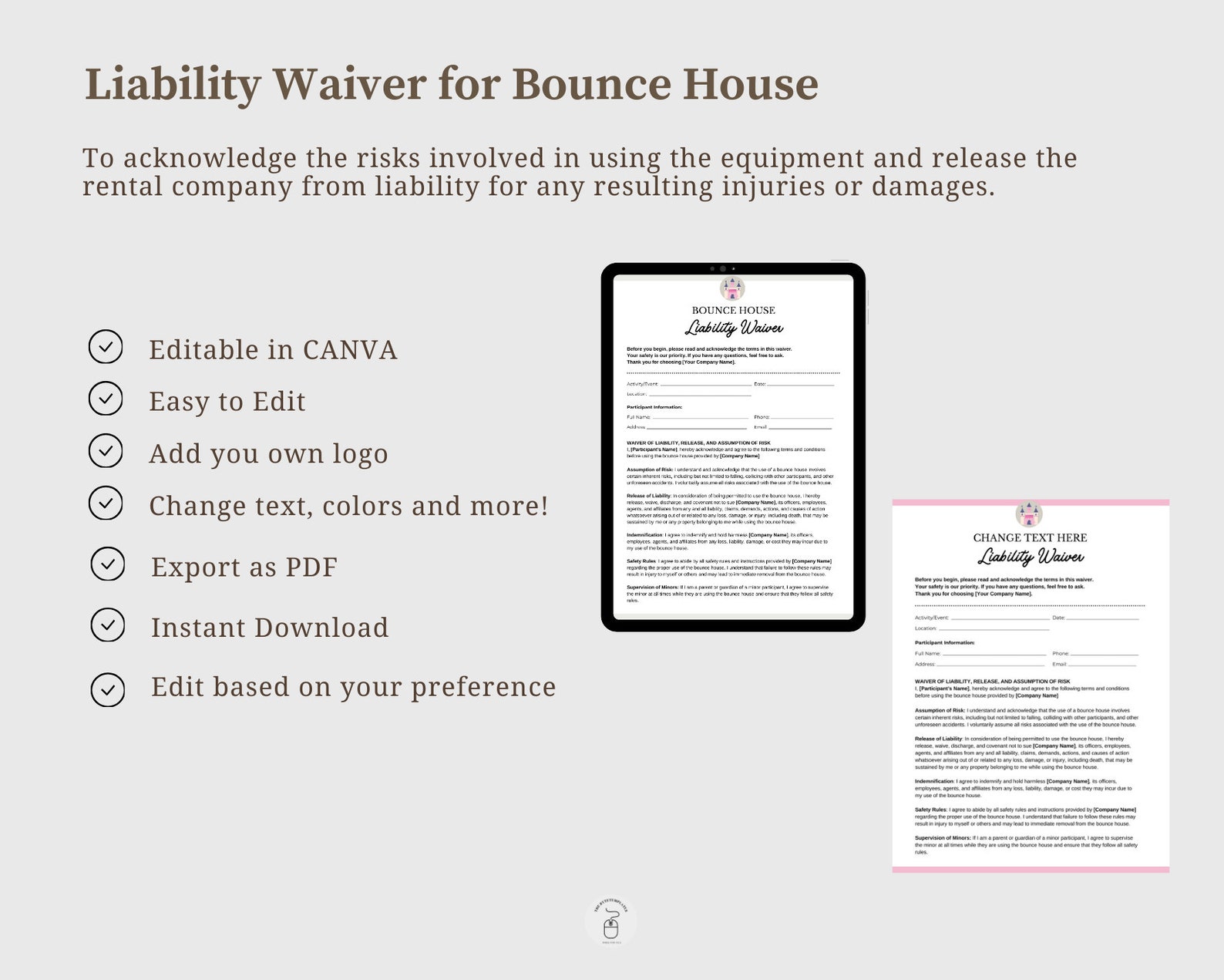 Bounce House Waiver Form Release of Liability Template Editable and