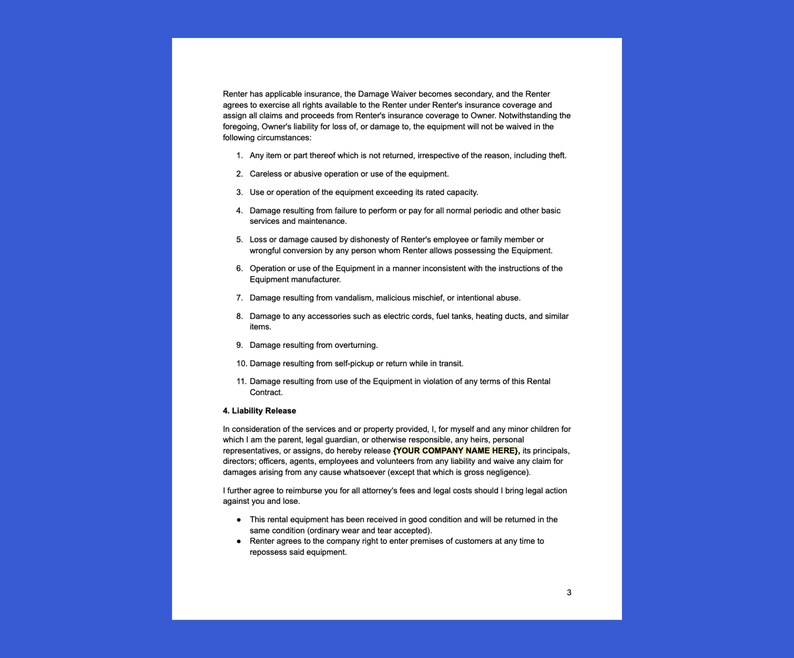 Bounce House Rental Contract Agreement Template Editable Etsy