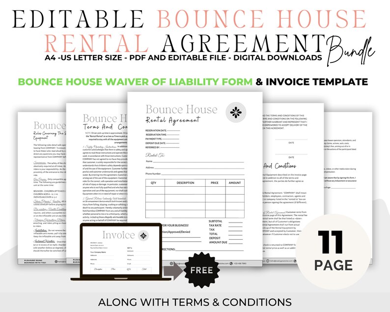 Bounce House Rental Agreement Form Bundle Downloadable Editable Bounce