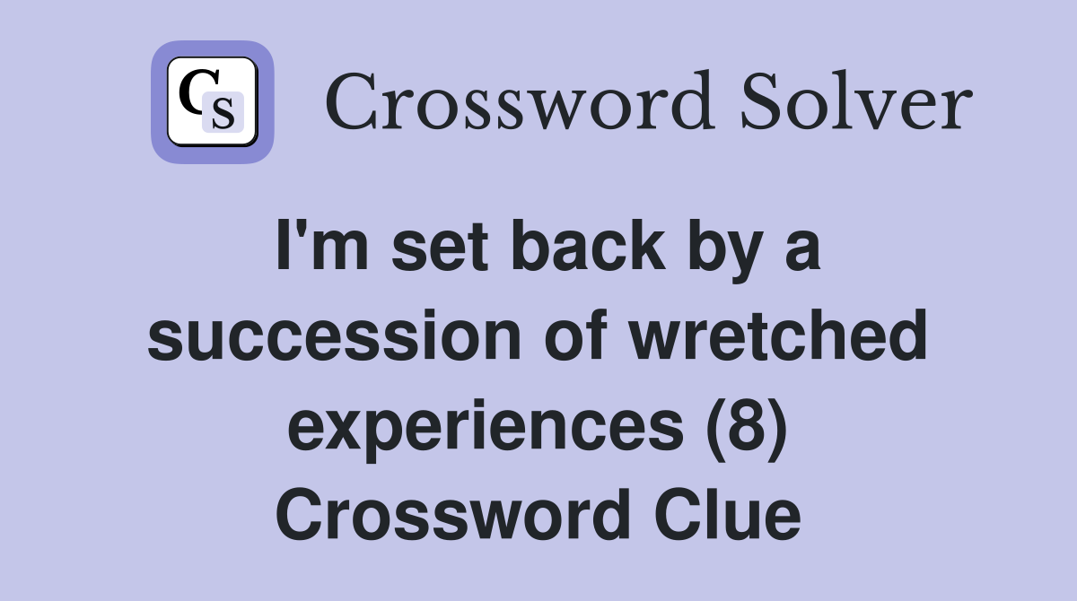 I #39 m set back by a succession of wretched experiences (8) Crossword