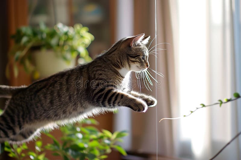Cat Chasing a Laser Pointer and Bouncing Off the Walls Stock Image