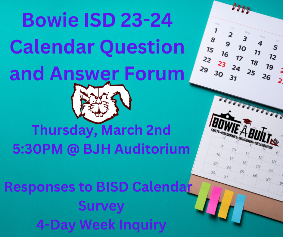 Bowie Bowie ISD Families Save the Dates for the 2025 2026 School