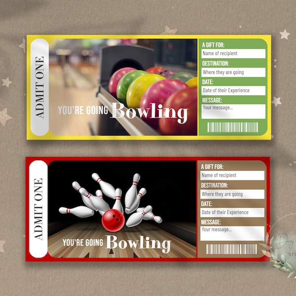 Surprise Bowling Gift Ticket Surprise Bowling Certificate Card Coupon