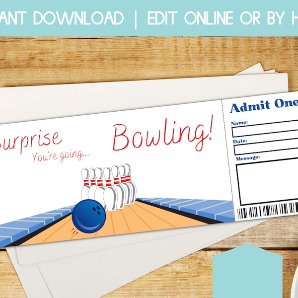 Bowling Gift Certificate Editable Template Surprise Bowling Party Cel