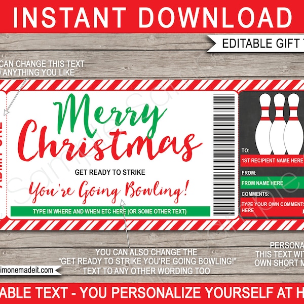 Christmas Bowling Gift Certificate Printed Smile Shop