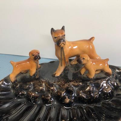 LOT 222M: Dog w/ Puppies Ash Tray Lipper Mann Creations Statue