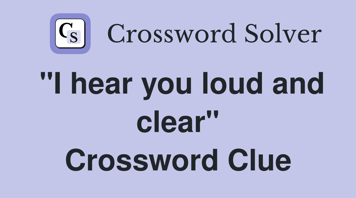quot I hear you loud and clear quot Crossword Clue Answers Crossword Solver