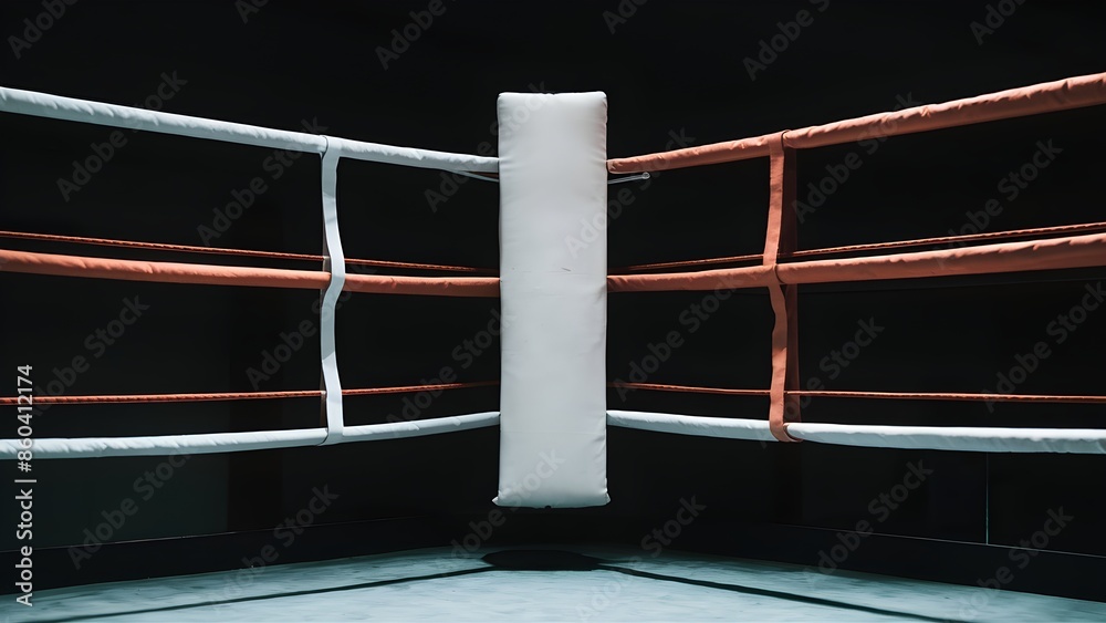 Corner of an empty sports boxing ring for fights and competitions with