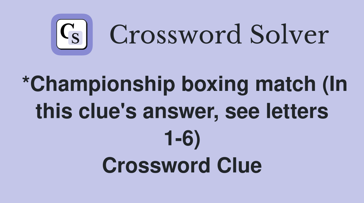 *Championship boxing match (In this clue #39 s answer see letters 1 6