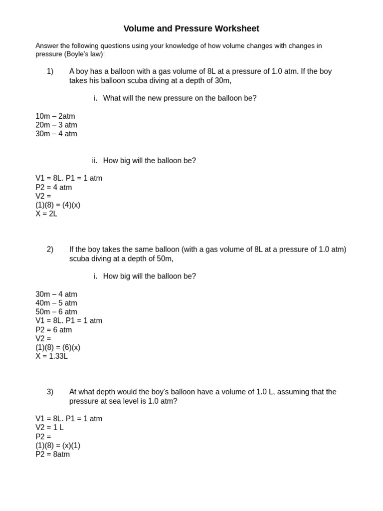 Boyles Law Worksheets With Answers Printable Holiday Crafts