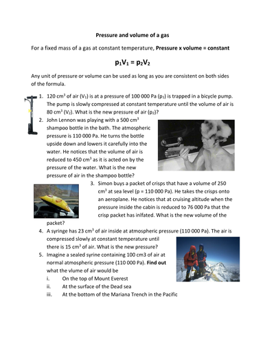 Boyles Law Worksheet Teaching Resources