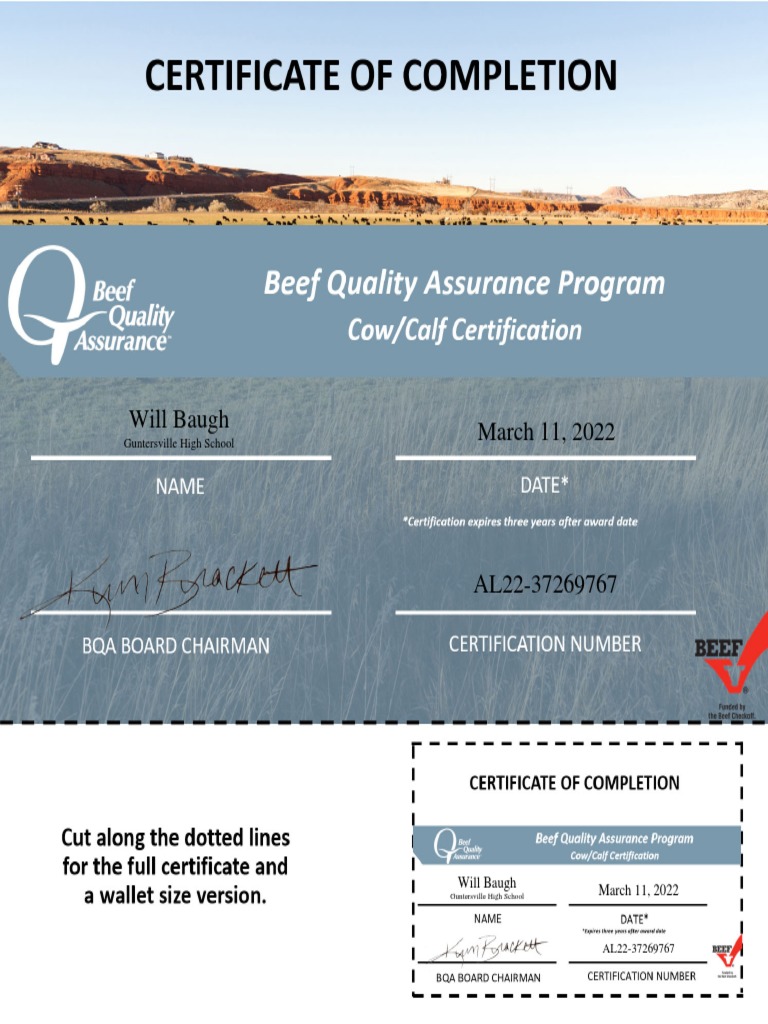National BQA Certificate CowCalf PDF