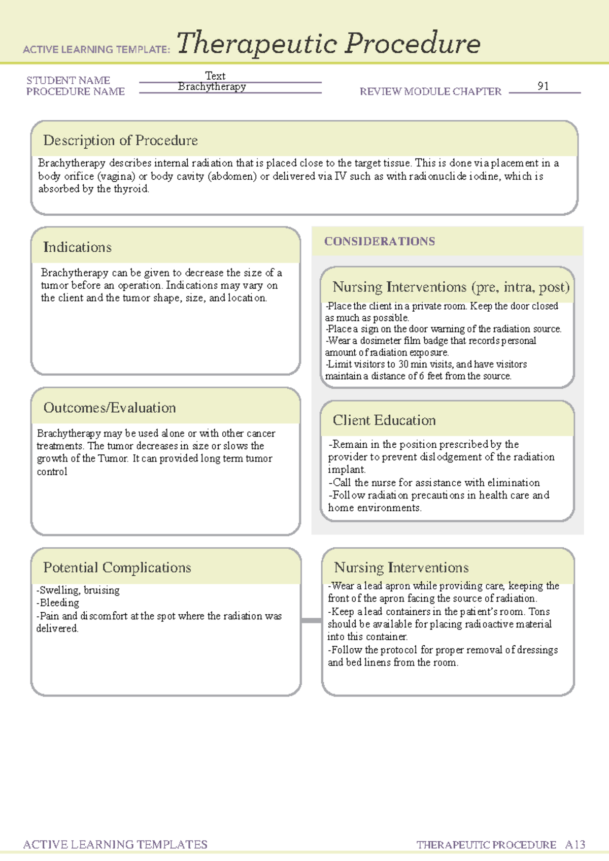 brachytherapy pdf ACTIVE LEARNING TEMPLATE: Therapeutic Procedure