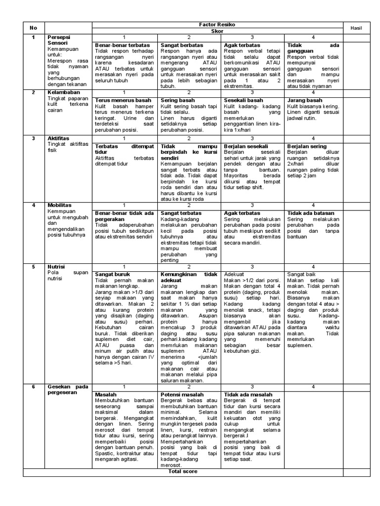 Braden Scale For Predicting Pressure Sore Risk PDF Pain Meat