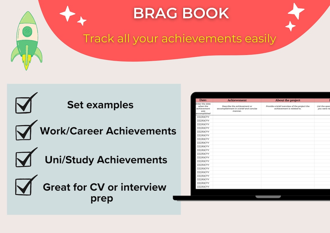 Brag Book Tracker Template Track Your Accomplishments Easily Etsy