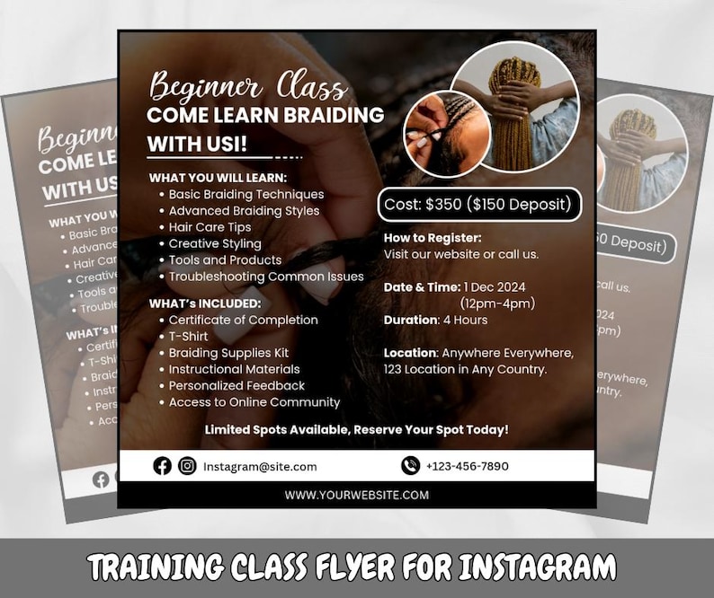 Editable Instagram Braiding Class Flyer Template Canva Hair Training