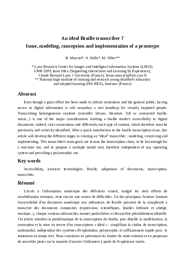 (PDF) An ideal Braille transcriber? Issue modeling conception and