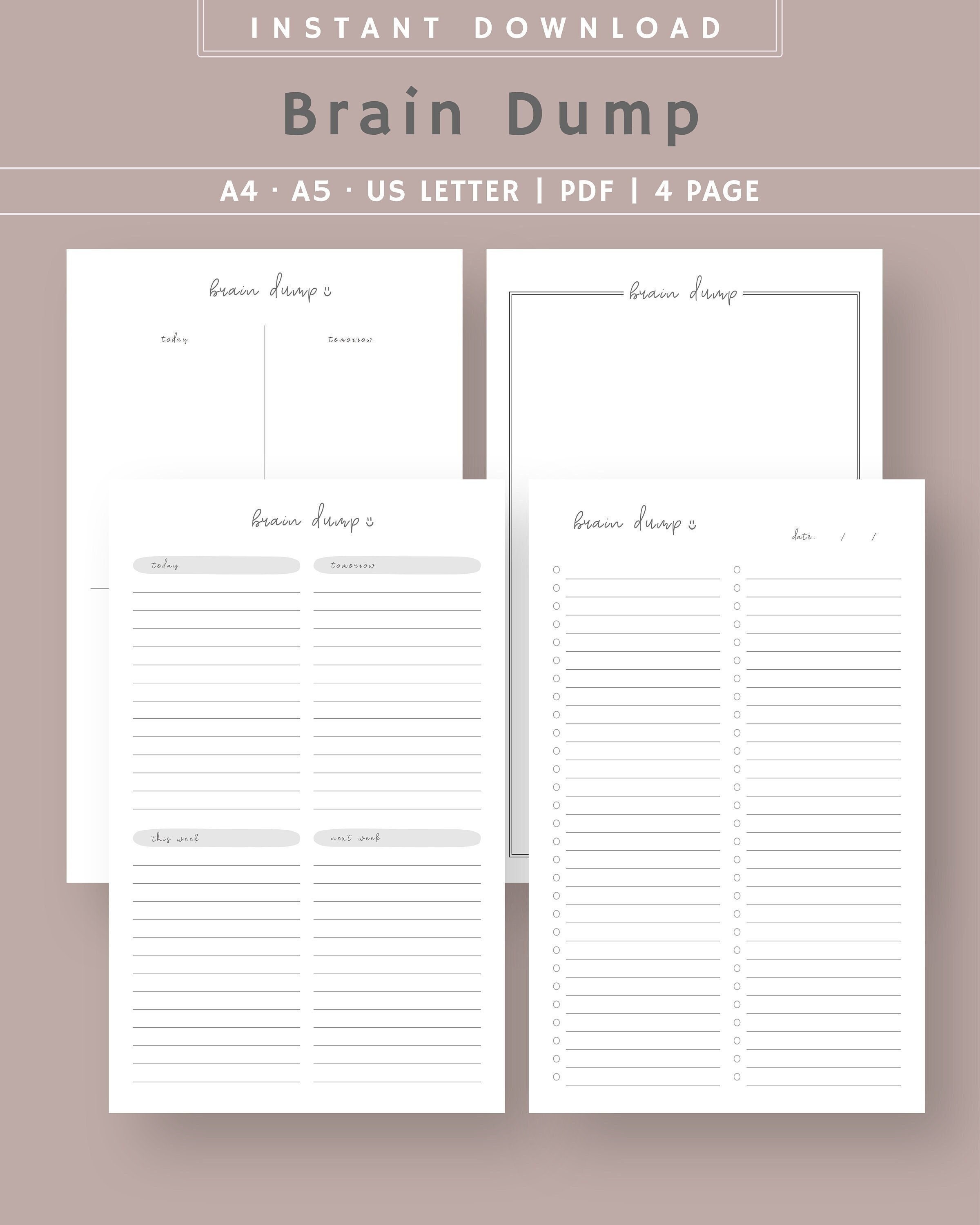 Brain Dump Printable A4 A5 Letter Brain Dump Templates to Do List