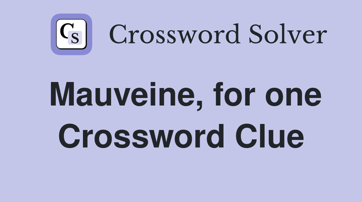 Mauveine for one Crossword Clue Answers Crossword Solver