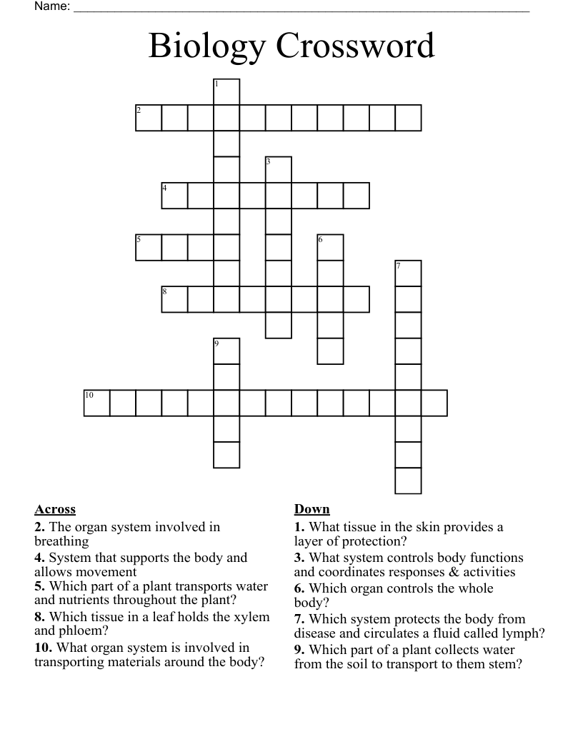 Biology Crossword Puzzles Free Printable Free download and print for you
