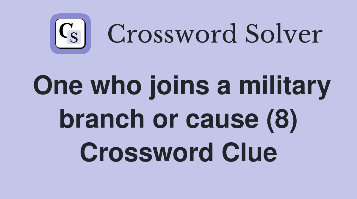 One who joins a military branch or cause (8) Crossword Clue Answers