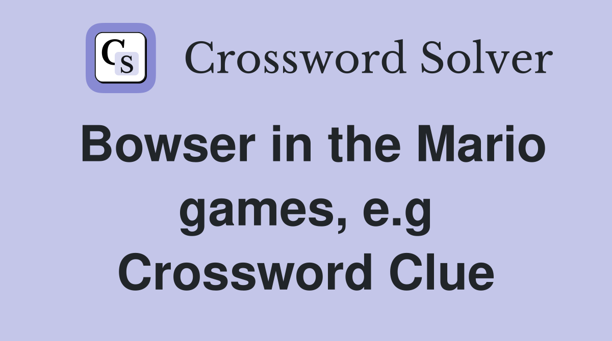 Bowser in the Mario games e g Crossword Clue Answers Crossword Solver