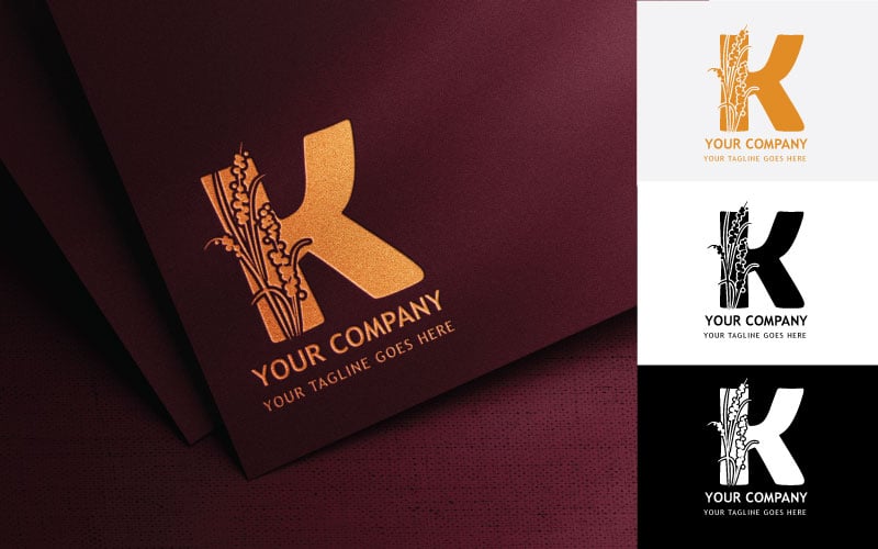 Floral Letter K Embroidery Logo Design Brand Identity Template de