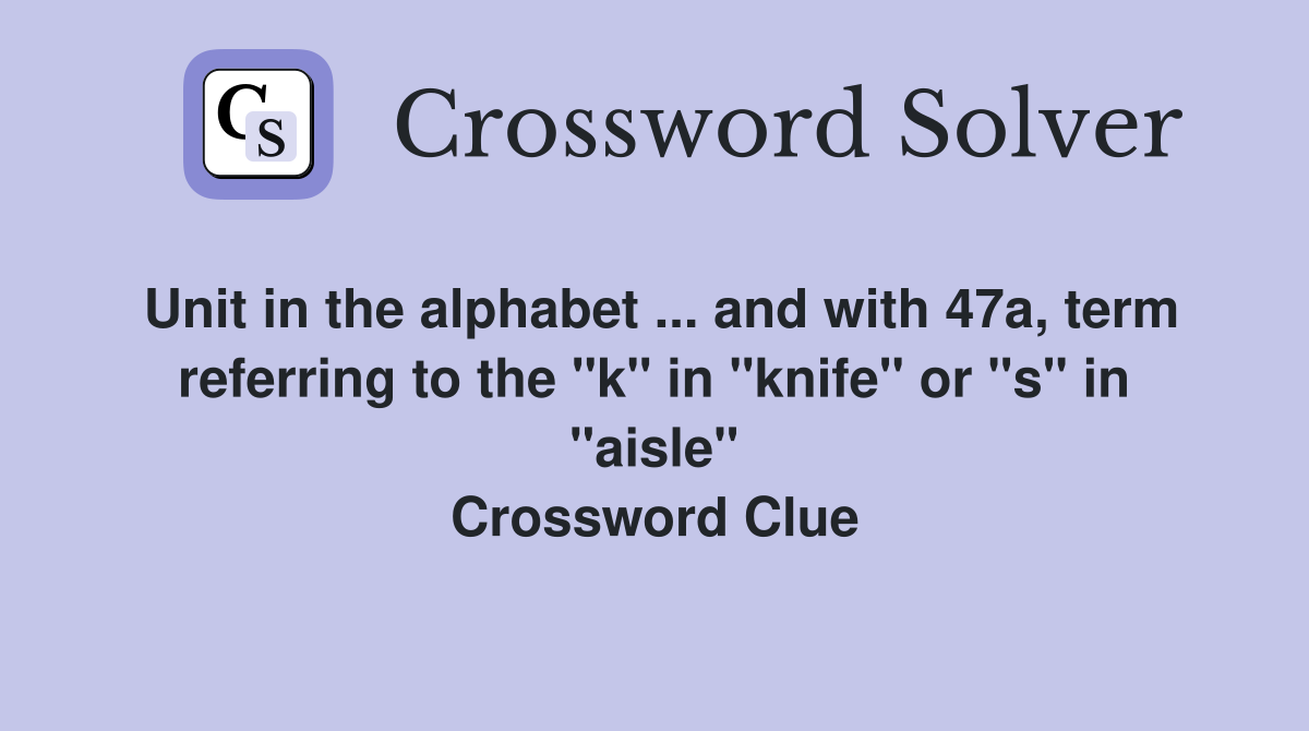 Unit in the alphabet and with 47a term referring to the quot k quot in
