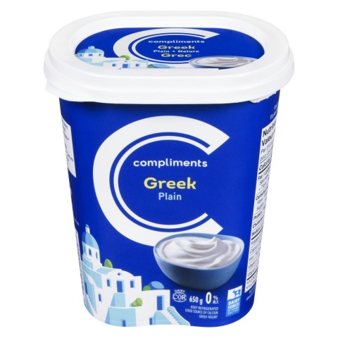 Compliments Plain Greek Yogurt 0% M F 650g Canadian Goodness