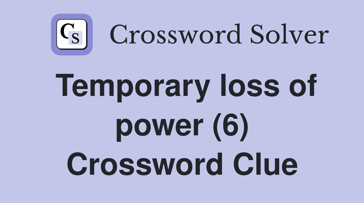 Temporary loss of power (6) Crossword Clue Answers Crossword Solver