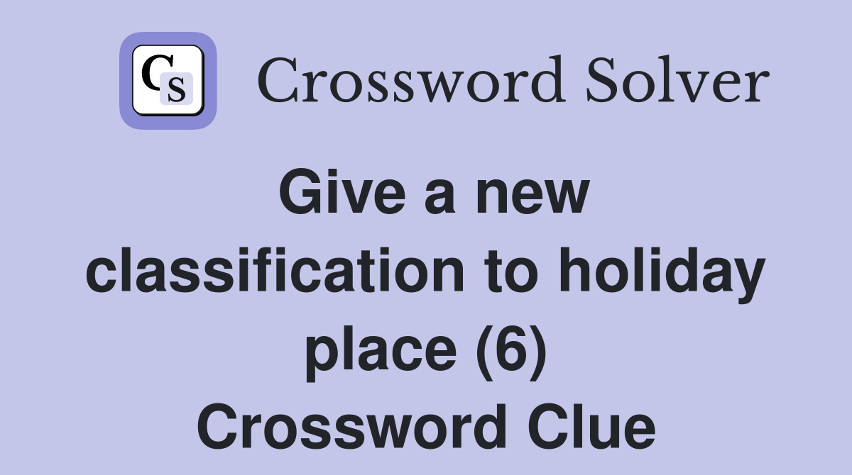Give a new classification to holiday place (6) Crossword Clue Answers