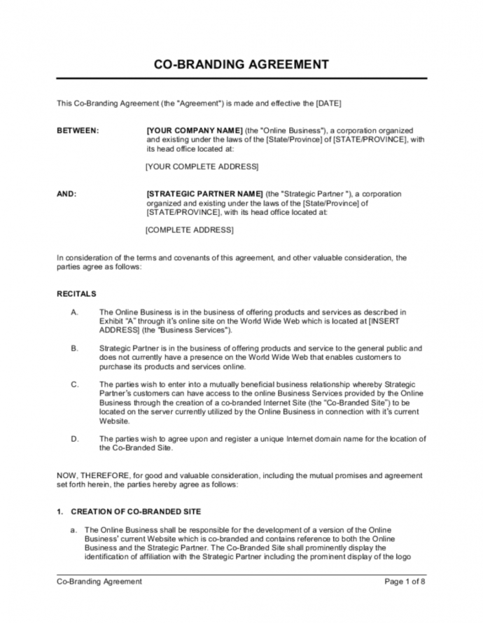 Printable Cobranding Agreement Template Businessinabox™ Brand