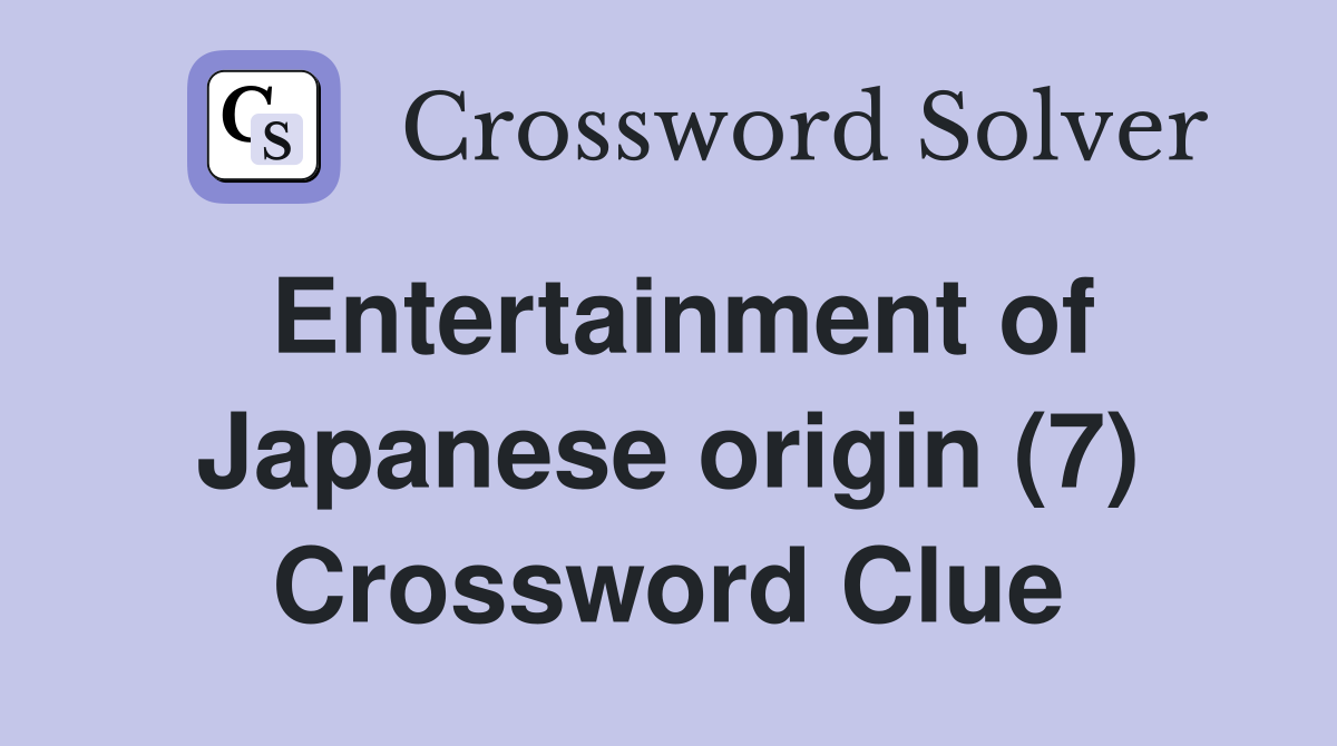 Entertainment of Japanese origin (7) Crossword Clue Answers