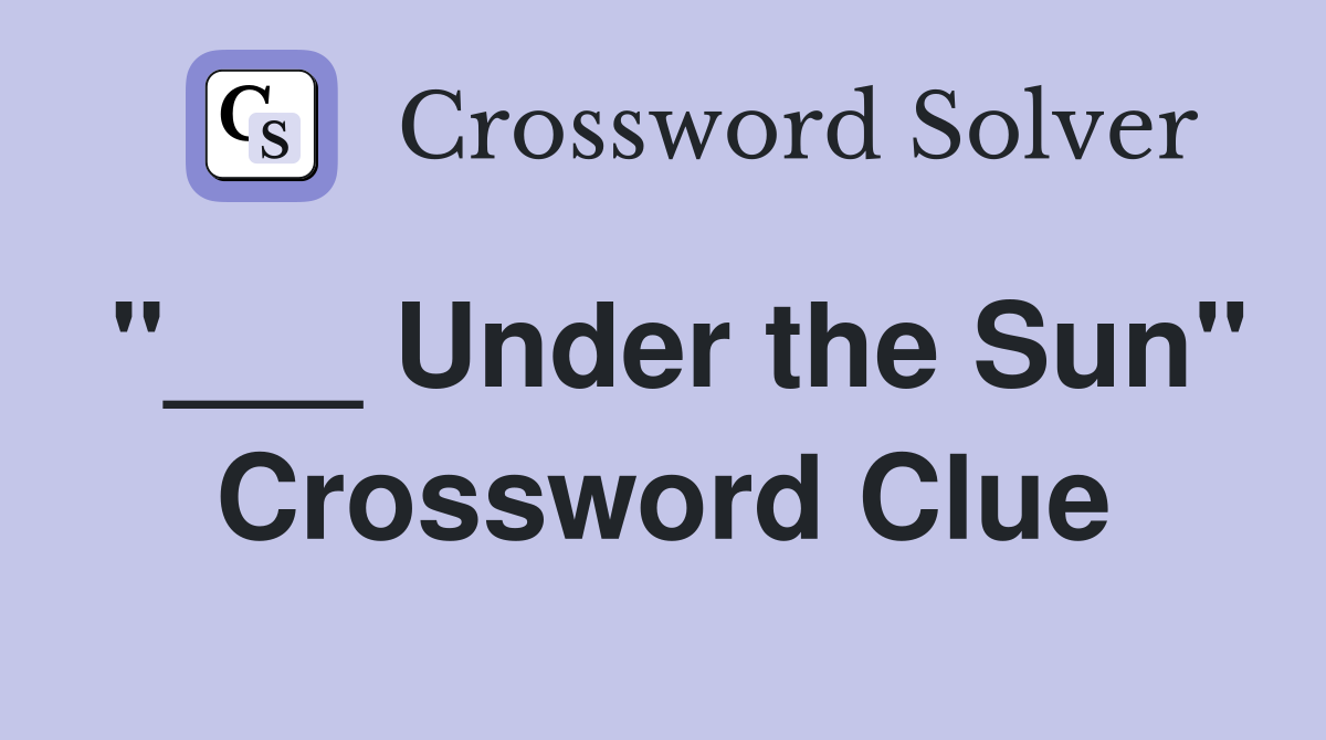 Under the Sun quot Crossword Clue Answers Crossword Solver