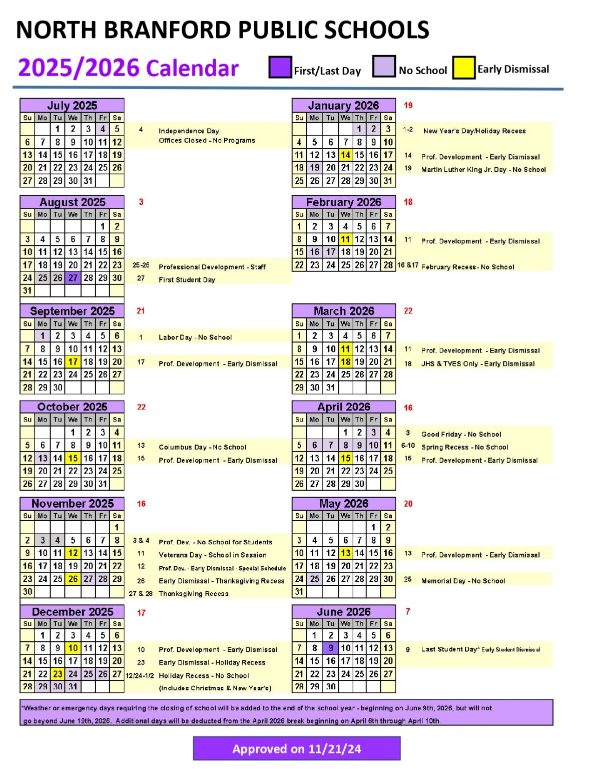 NORTH BRANFORD PUBLIC SCHOOLS 25 26 Calendar Revised pdf EduCounty
