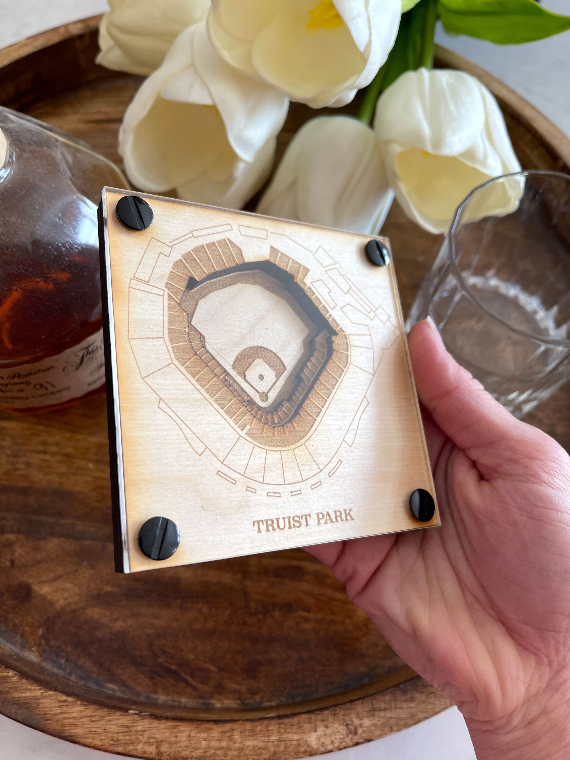 Atlanta Braves Gift Wood Coaster Laser Engraved Coaster Set Etsy