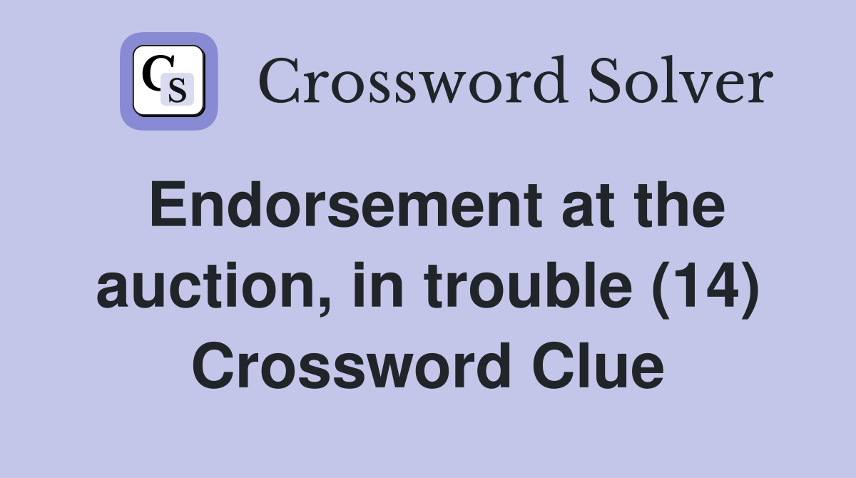 Endorsement at the auction in trouble (14) Crossword Clue Answers