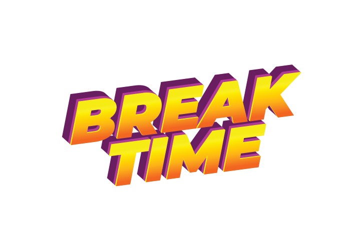 Premium Vector Break time text effect in 3d look with eye catching colors