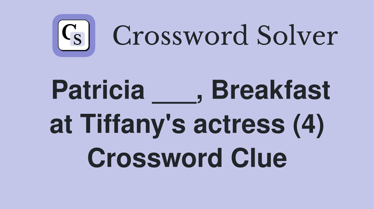 Patricia Breakfast at Tiffany s actress (4) Crossword Clue