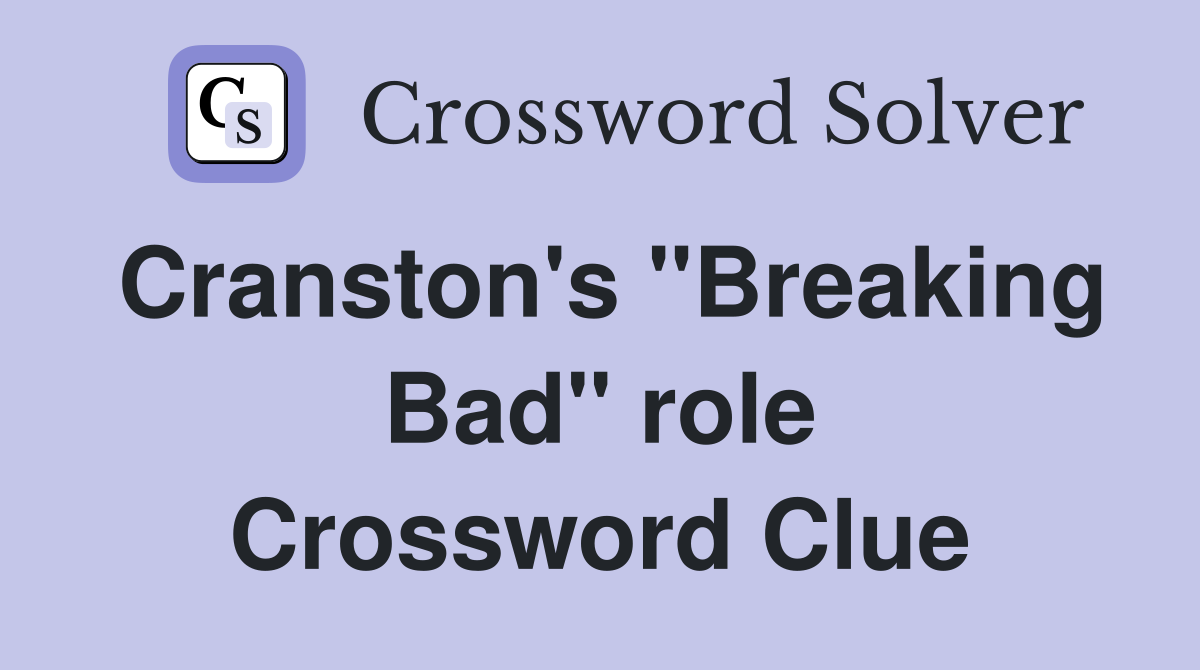 Cranston #39 s quot Breaking Bad quot role Crossword Clue Answers Crossword Solver