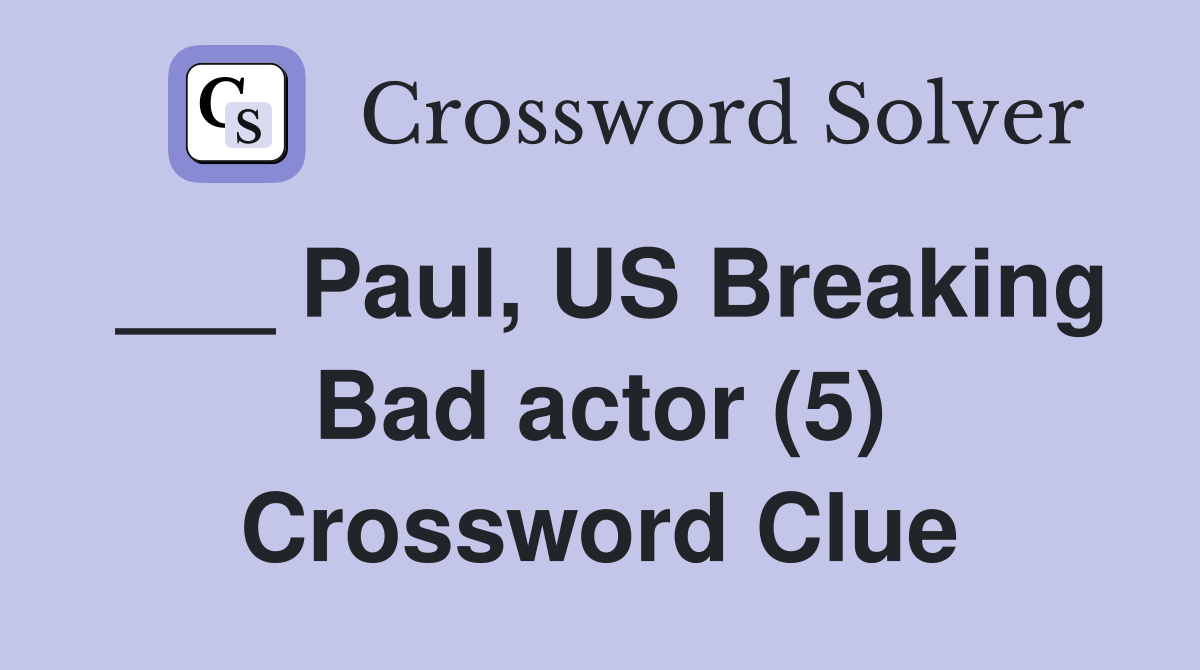 Paul US Breaking Bad actor (5) Crossword Clue Answers Crossword Solver