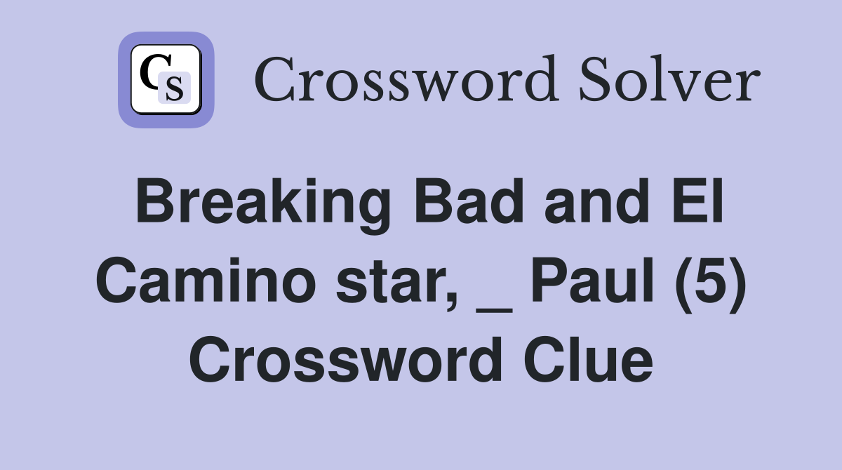 Breaking Bad and El Camino star Paul (5) Crossword Clue Answers