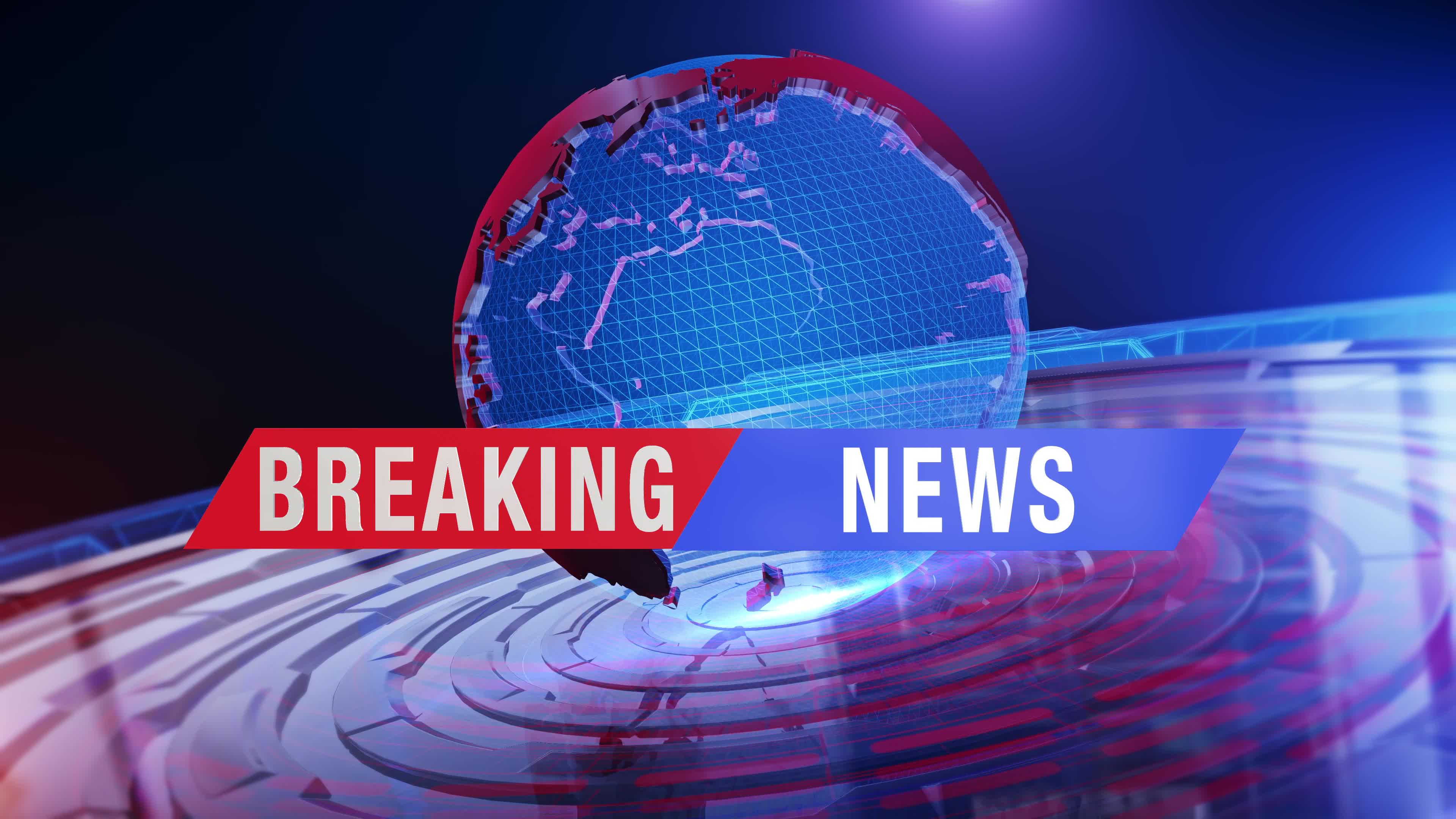 Breaking news banner in front of a digital globe network Looped 4216196