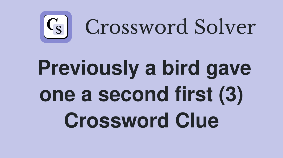 Previously a bird gave one a second first (3) Crossword Clue Answers