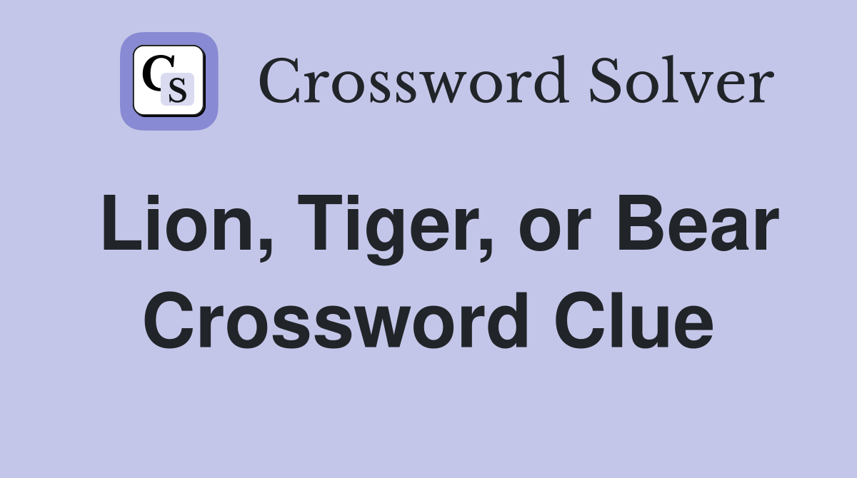 Lion Tiger or Bear Crossword Clue Answers Crossword Solver