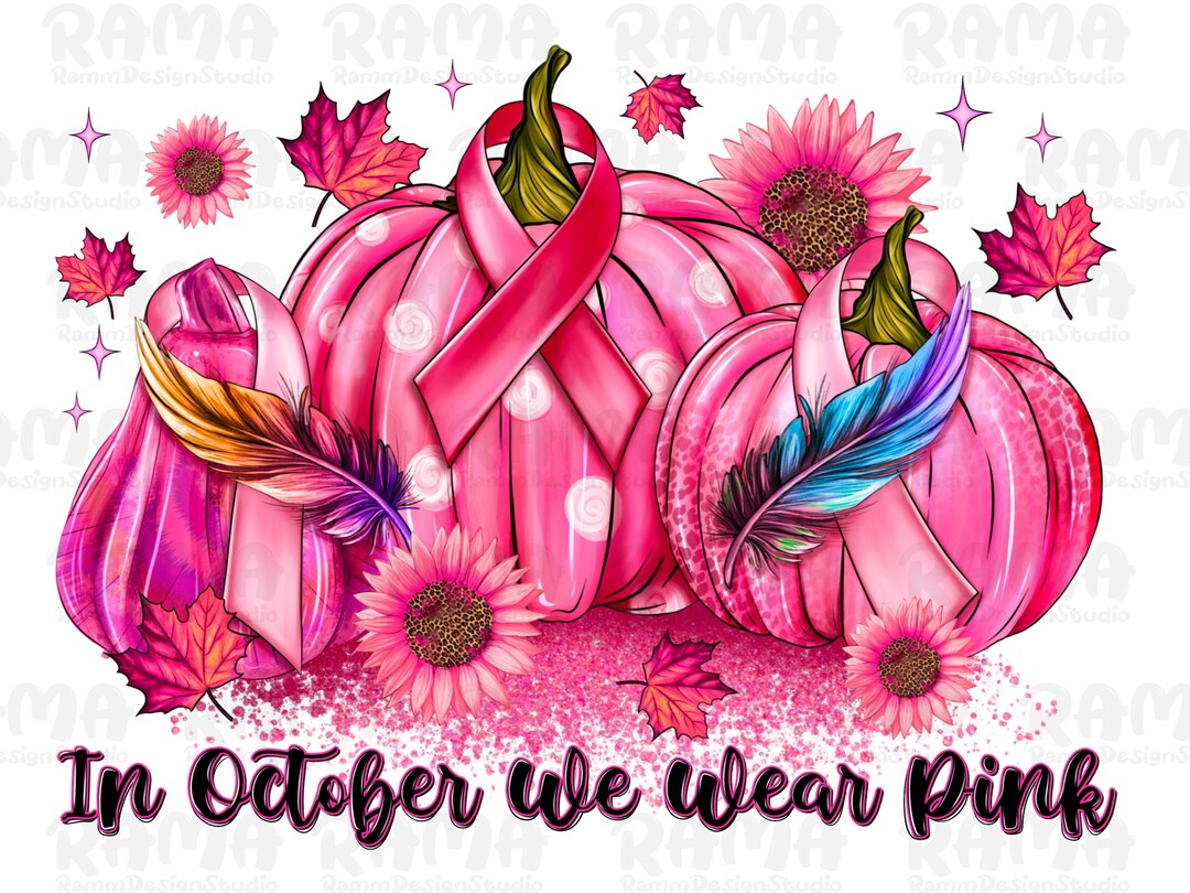 Pink Pumpkins in October We Wear Pink Png Sublimation Design breast