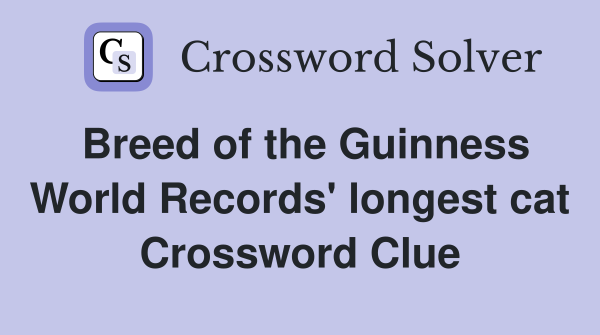Here are some of the images for Breed Of The Guinness World Records Longest Cat Crossword that we found in our website database.
