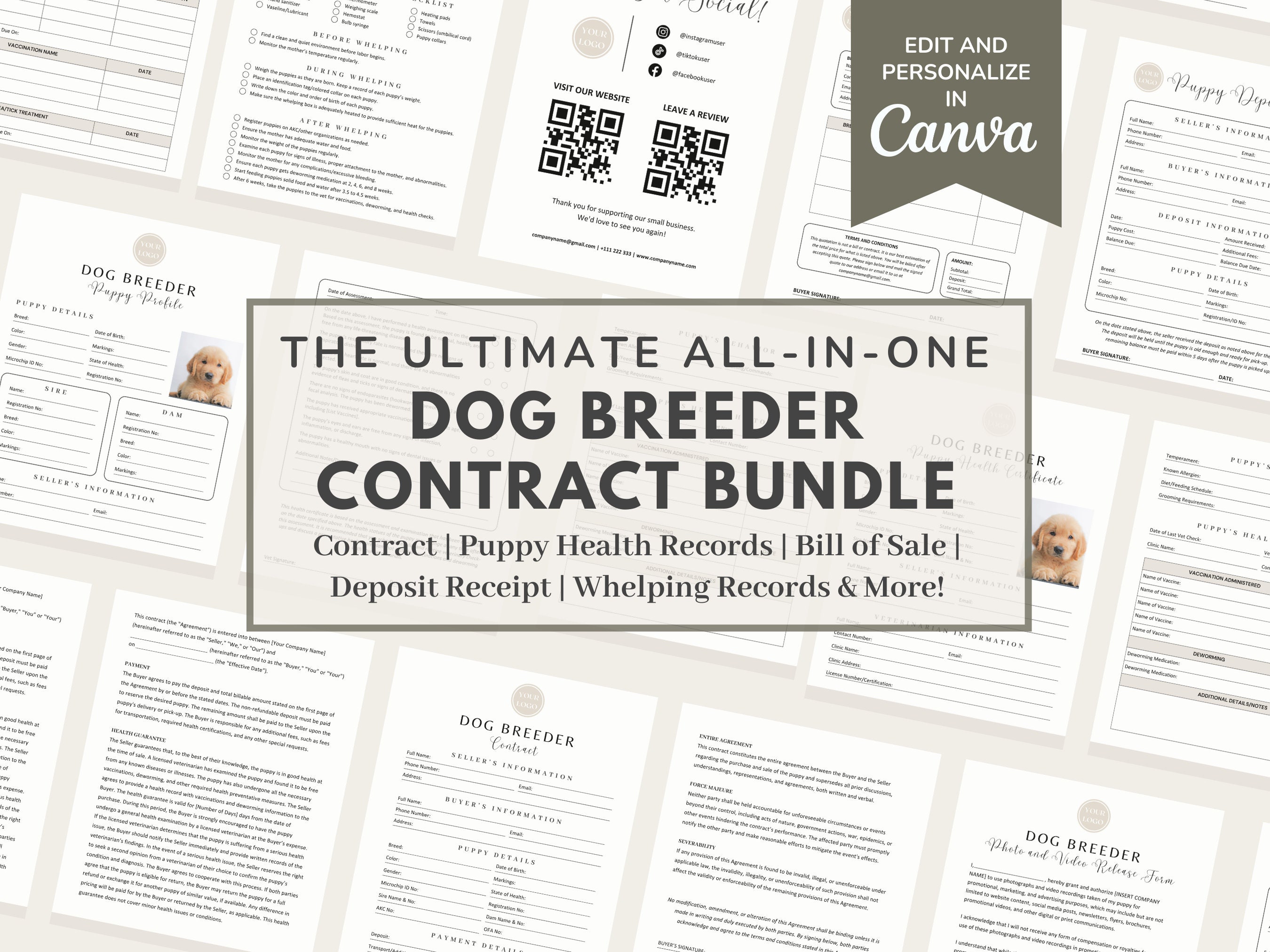 Professional Breeder Bundle Contract Editable Form Breeders Contract