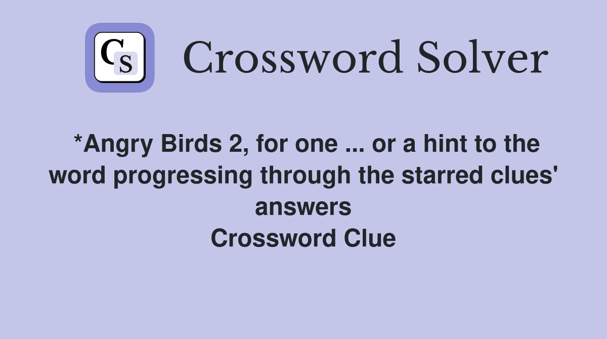 *Angry Birds 2 for one or a hint to the word progressing through