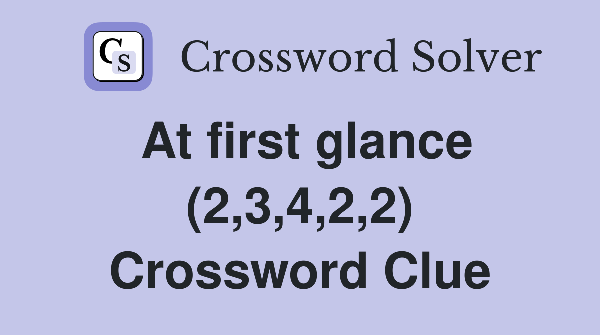 At first glance (2 3 4 2 2) Crossword Clue Answers Crossword Solver